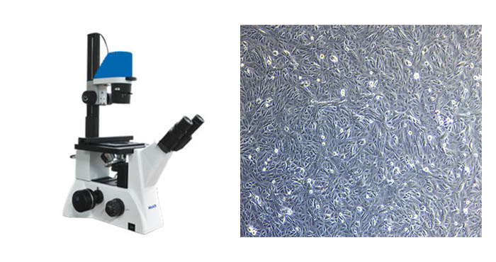 明美倒置显微镜MI52-CF,视场大、成像清晰且对比度好,采用优良的无限远光学系统,可实现明视场、相衬观察,还可以搭配明美显微数码测量系统,对培养皿中的Vero细胞进行动态显微观察与成像分析。