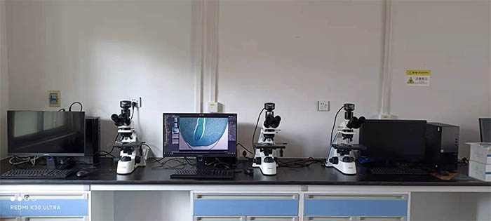 此次实验用的仪器设备为明美生物显微镜ML31,可实现明场、暗场、相差多功能显微观察,外置1x数码相机接口,拍照视野大小和目镜视野同步实时显示。