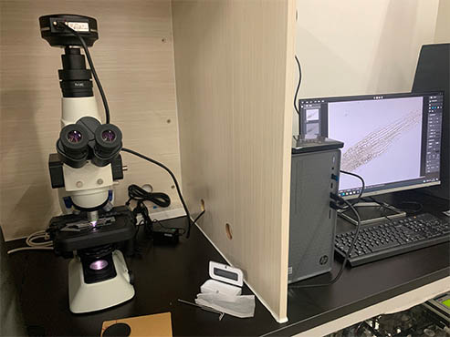 此次实验用到的仪器为明美高性价比荧光显微镜MF23搭配1250万像素显微镜相机MSX2.荧光显微镜MF23采用无限远平场消色差物镜和大视野目镜,可用双目或三目观察,搭配LED荧光激发装置,实现明场和荧光显微观察,供临床试验室利用显微放大原理观察微小细胞、组织等样本用。