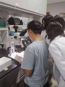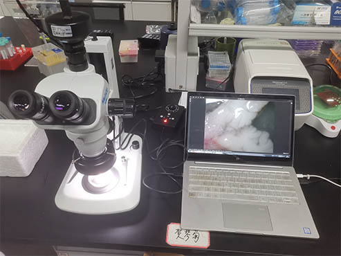 湖南大学生物学院借助体视显微镜对解剖小鼠组织进行实时观察,视野清晰,操作方便,长时间不会头晕,眼睛不疲劳,根据需求外接500W像素显微镜相机MD50连接电脑。