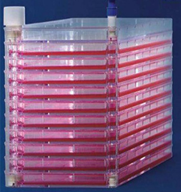细胞大量培植,通常需要使用叠层式的细胞工厂。细胞工厂是一种设计精巧的(1-40层)细胞培养装置,因为层数可达40层,要观测每层细胞的生长情况,就需要从细胞工厂的上方、下方、侧面等角度观测。