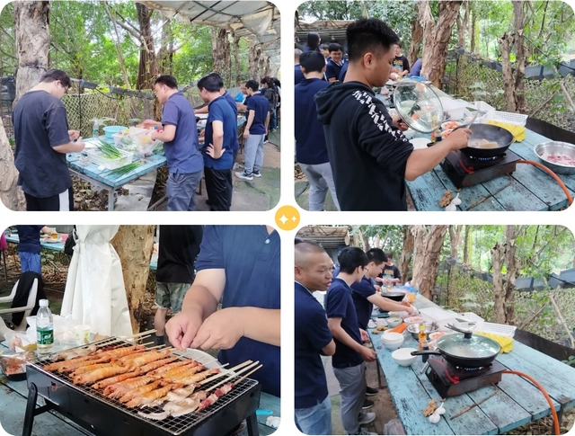 烹饪与烧烤环节中,各位同事大展身手,共同完成了一顿丰盛的午餐。家属们的参与,尤其是孩子们的欢笑,让这个秋日的早晨充满了温馨与欢乐。