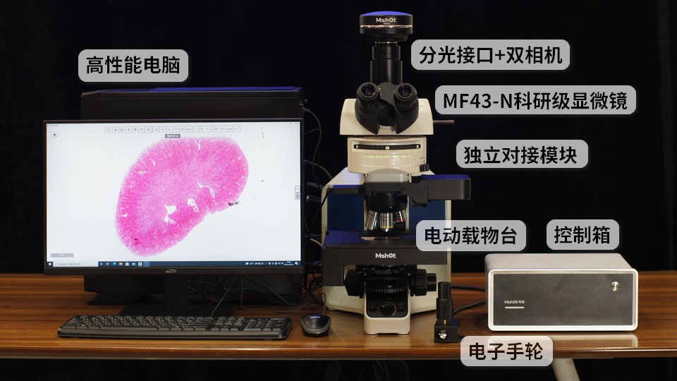 用数字切片扫描系统升级MF43-N等显微镜,既能获得快速切片扫描功能,也能完整保留显微镜功能,尤其适合科研和病理诊断研究等应用,如果您有需要,明美光电欢迎您咨询,期待与您相约!