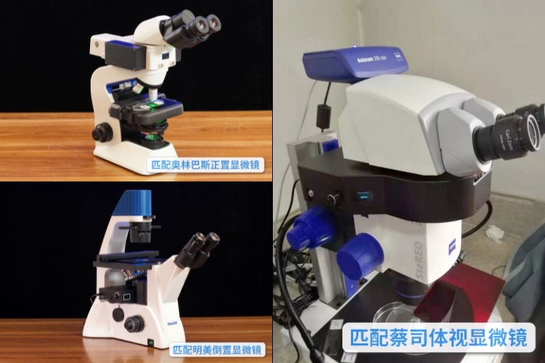 明美数显荧光模块有正置、倒置和体视多种类型,可以适配各大品牌、不同类型的无限远光学显微镜,让传统显微镜有机会以非常理想的成本升级为荧光显微镜。