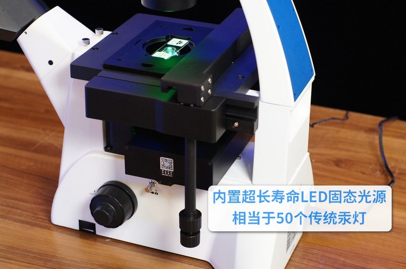 传统荧光显微镜需要外接汞灯灯箱之类光源,并使用机械控制箱计算使用时间,比较累赘,明美数显荧光模块则采用了更先进、更高整合度的方案,模块集光源、激发块、调节显示于一体,外观简洁,内置高品质的LED固态光源,超长寿命可达数万小时,相当于50个传统汞灯,亮度均匀不衰减还免调光,使用维护更便利省心。
