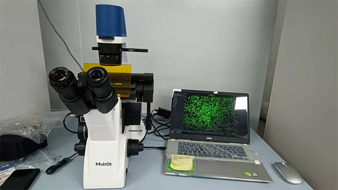 本次,明美倒置荧光显微镜MF52-N成功入驻广西大学医学院,并获得老师的认可。老师主要用来观看免疫荧光,明美荧光显微镜MF52-N不仅可应用于细胞组织,透明液态组织的显微观察,也可用于生物制药,医学检测、疾病预防等领域内的荧光显微观察。