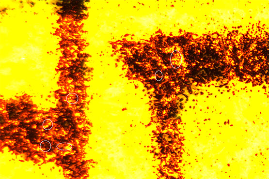 使用明美体视荧光显微镜观察文书后,可以直接确定朱墨时序;明美体视荧光显微镜采用激发荧光和透射白光的显微镜检验法。这种方法对含有荧光物质的印油的朱墨时序检验来说,直观、简单、实用。