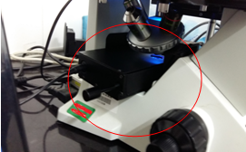 升级后的CKX41 LED荧光附件MF-BG-LED-CKX41(红色圆圈内)