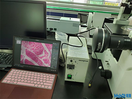 近日,深圳某医疗科技公司在网上找到我们,客户已有一台奥林巴斯倒置显微镜IX71,需要配一套高像素显微镜相机拍病理切片和荧光切片,深圳区域工程师根据老师实际需求推荐了明美科研级显微镜相机MSX2,这款显微镜相机采用大靶面高性能的成像芯片,设计USB3.0数据传输接口,具有高分辨率、颜色还原准确和高灵敏度的特点,其色彩表现,是液基细胞分析、免疫组化、骨髓细胞分析等对颜色要求高的病理诊断的理想工具。此外在明暗场、相衬、偏光、DIC、荧光成像等领域同样适用。