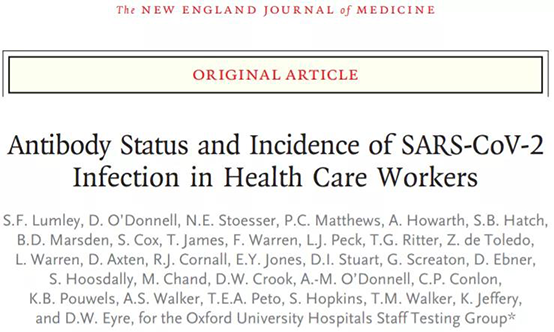 这项发表在《新英格兰医学杂志》上的研究显示,产生抗S蛋白或抗N蛋白抗体的医护人员中,只有2名在随访期内再次感染新冠,且均为无症状感染,算是间接为新冠疫苗的保护效力提供了证据。