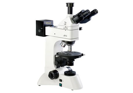偏光显微镜有两个偏振镜,一个装置在光源与被检物体之间的叫“起偏镜”;另一个装置在物镜与目镜之间的叫“检偏镜”,有手柄伸手镜筒或中间附件外方以便操作,其上有旋转角的刻度。