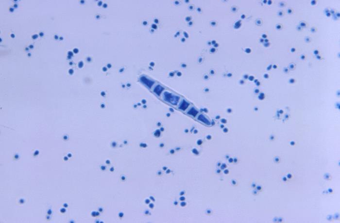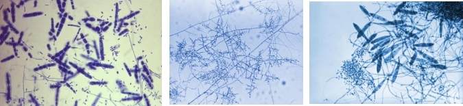 大分生孢子:细长、壁薄,多分隔,但临床上常见菌株产孢较少,需要仔细寻找