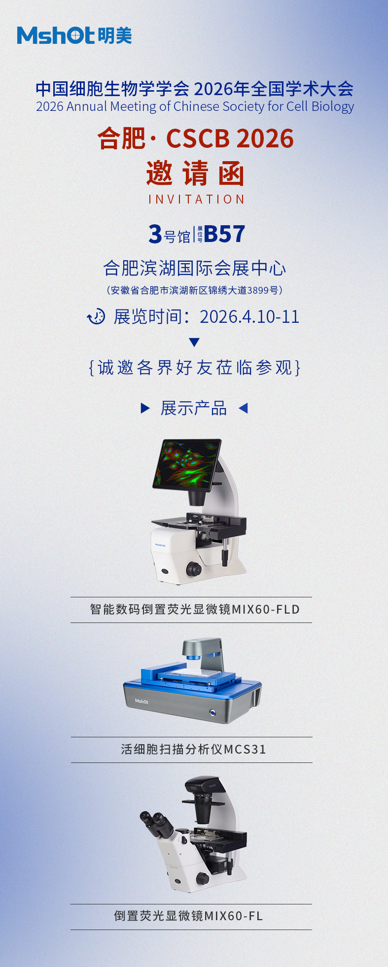 明美光电诚邀您相聚合肥・CSCB 2026,共探细胞生物学前沿!